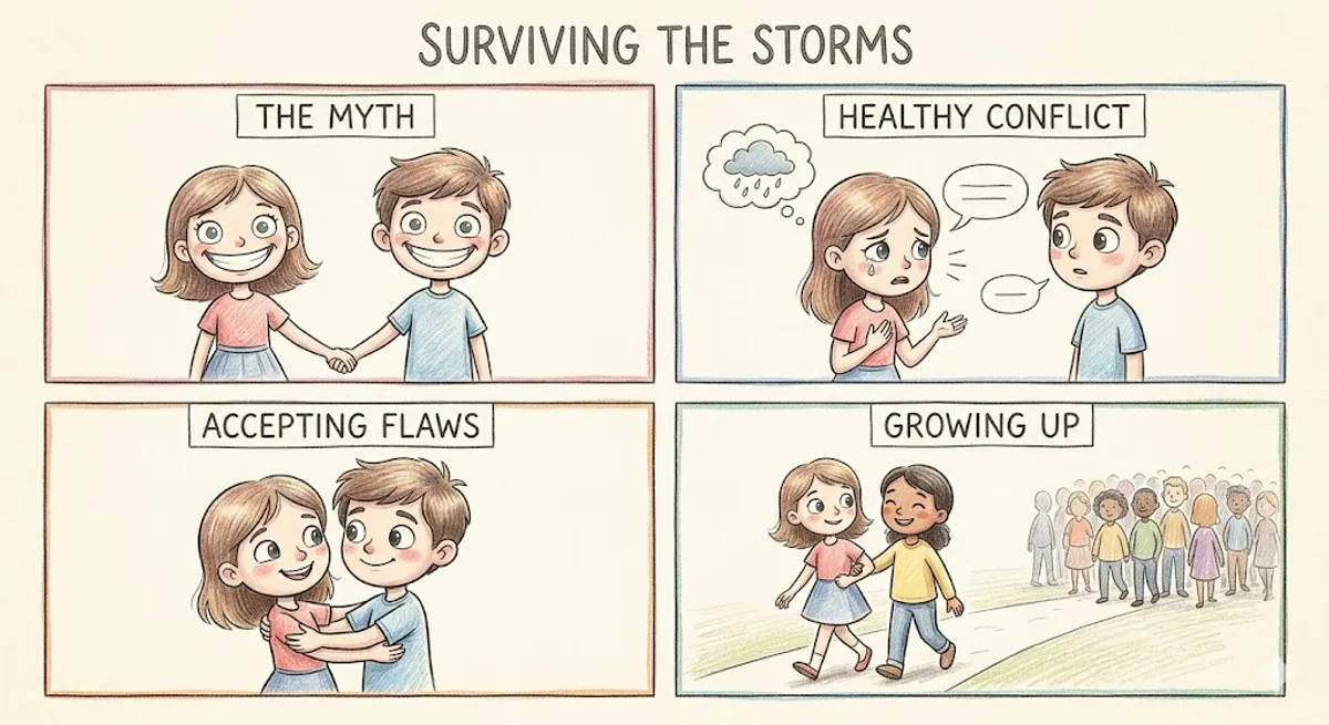 There is a common myth that best friends never fight. In reality, a relationship without any disagreements is often a relationship where people are hiding their true feelings. Psychologists note that handling conflict well is actually a sign of a strong, healthy friendship. When you trust someone enough to say, "Hey, that hurt my feelings," and they listen instead of attacking you, your bond grows deeper. True friendship requires accepting that your friend is a different person with their own flaws, and they will occasionally mess up. Surviving a healthy argument proves that your friendship is stronger than a temporary disagreement. You might also notice your friend group shrinking as you get older. This is completely normal! As humans mature, our brains naturally undergo something called "socio-emotional selectivity." This is a fancy way of saying that we stop caring about being popular with everyone and start focusing our energy on a smaller, higher-quality circle of people who truly make us feel safe. So, if you find yourself drifting away from a large crowd to hang out with just one or two close friends, you aren't losing your social skills—you are just growing up.