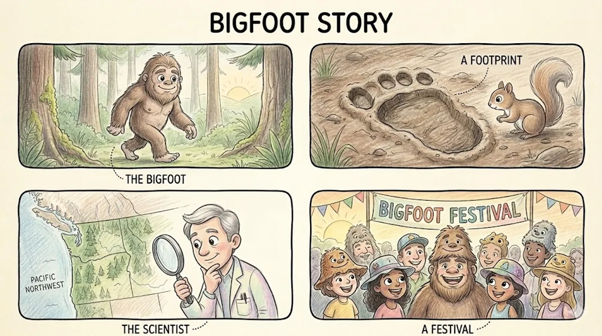 - Text: Why do you think people enjoy stories about mysteries and legends like Bigfoot?