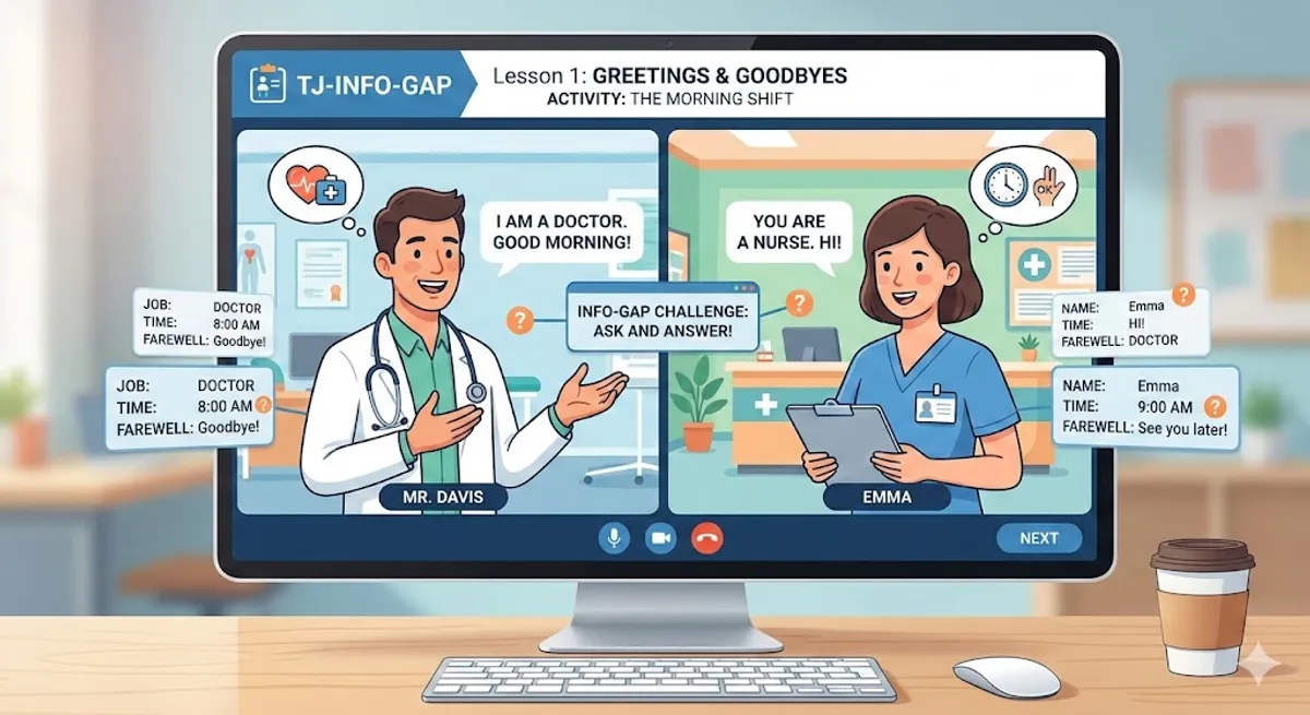- Topic: Greetings & Goodbyes: The Morning ShiftScenario_description: