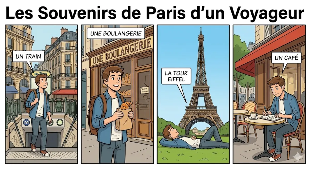 Découvrez le premier voyage d'un jeune Américain à Paris à travers ses souvenirs de la Ville Lumière au niveau A2.